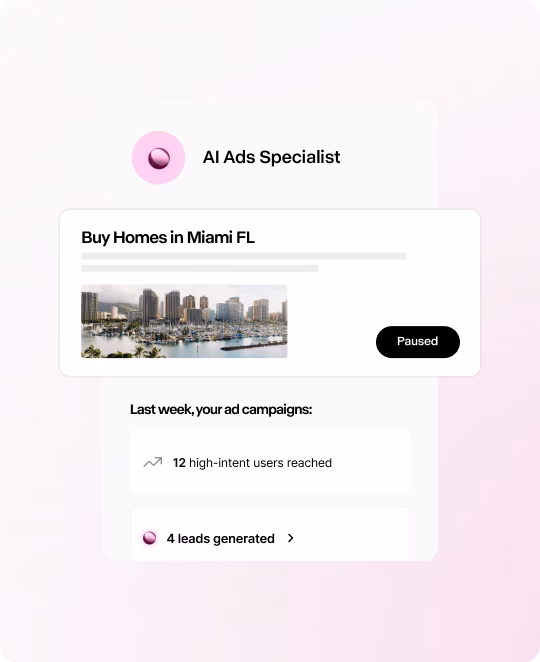 With strategies proven by working with 30% of the WSJ RealTrends Top 100 and insights from nearly 65,000 real estate websites on our platform, our AI Marketing Specialists deliver lasting growth without adding to your headcount.