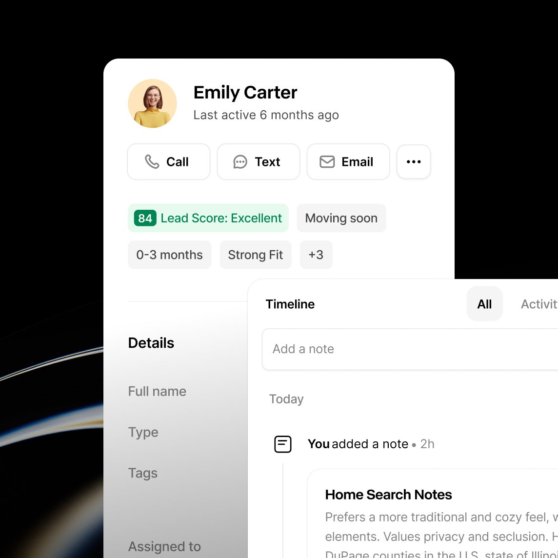Presence® CRM looks for early signals across your contacts and relationships, like listing searches, saved homes, website activity, marketing activity and renewed conversations. When it sees a pattern or an intent, it highlights who is likely getting ready to buy or sell and recommends the next step for you. -