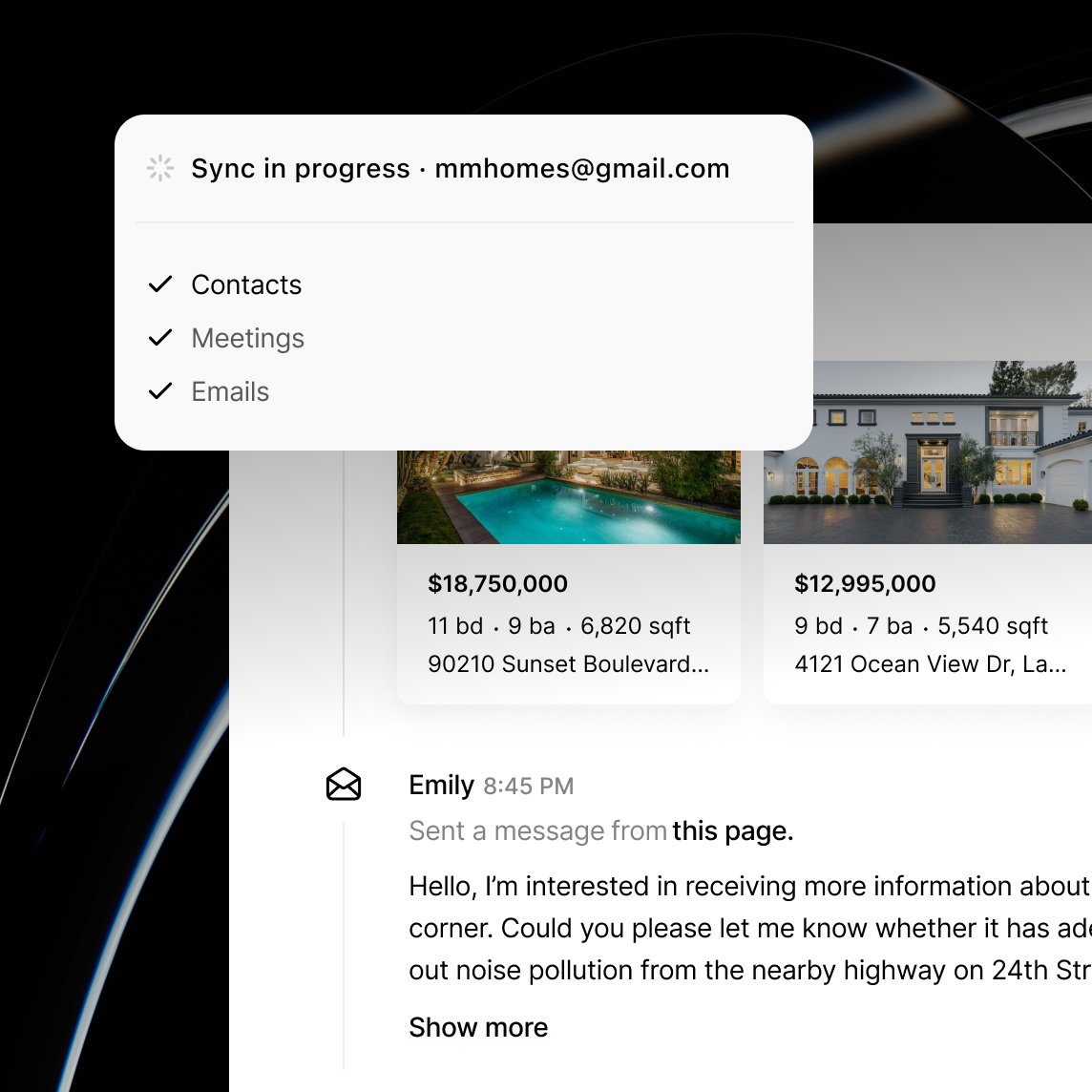 We keep your data private. The CRM processes emails, calls, and texts only to extract context, then immediately forgets the raw content. Sensitive details are removed, and nothing is used to train AI models.